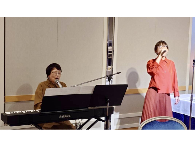 その後、総本部 川端事務局長より乾杯の挨拶をいただき、華やかに祝宴がスタート。途中にはゴスペルユニット「ジョイフル・ノイズ」の演奏があり、会場は大変盛り上がりました。