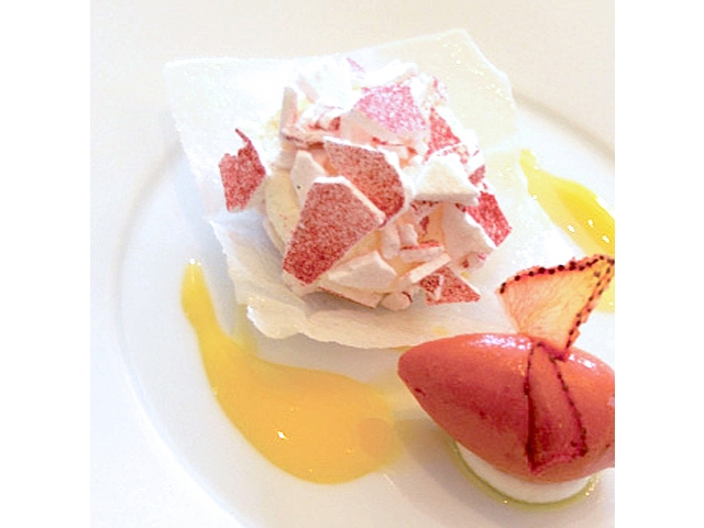 - クレーム・ダンジュ苺のソルベとレモンのクリーム添え